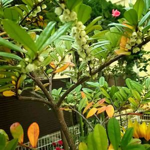 今年はこの木に、初めて可愛く小さいお花が鈴なりにつきました!💫 “浜ひさかき”(椿科) 最初は、お正月に求めた小さい金の🐷さんに入っていた木でした😄