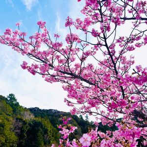 お友達4人でグランピングでお泊まり🏕️✨ 河津桜を見に行って来ました。 今年は寒く並木は一分咲き😂全国に寒波が居座るなか原木のピンク色の桜が春が来てるよ…🌸と教えてくれました。