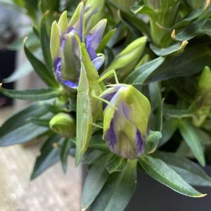 リンドウの花を食べるバッタ🦗 せっかくこれから開こうとしてるのに、食べないでよ💜 ハツユキカズラが可愛い色になりました 昨日の夕方の空💙☁️🩵☁️