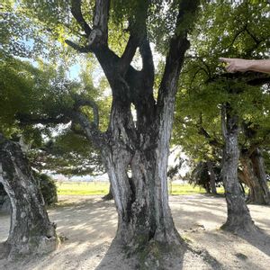 穴の空いた木🌳 備中高松城跡(水攻めの城)を散策していた時、見かけて気になりました 成長過程で、離れてはくっついたのか、不思議な木です(名称不明)