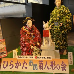 枚方市駅の菊人形🌼 ケイトウ 凄く成長してます❤️🩷 ハツユキカズラが紅葉してます🍂
