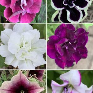 ①💗八重咲きペチュニア💗 ジュリエット・モダンワイン ベルチャーム・エマ モンローウォーク(1重) ピンクサファイア ジュリエット 黒真珠 ❷🩵ブルースター💚ニコチアナ(花たばこ)💛ジャメスブリテニア・ピーチサファリ ③🏷葉っぱの日 黄金ひいらぎ サニーフォスター(魔除けの庭木) ❹アナベル 3回目の開花 ⑤金柑の花 2回目の開花 最高気温35℃最低気温26℃ 晴れ お疲れ様でした🌼*・𖤣𖥧𖥣。𖥧𖧧