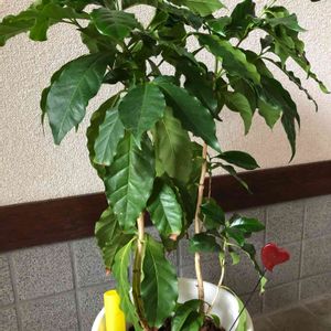 🎶コーヒーの木♬ 友人の友人から頂きました。 友人曰く「あのコーヒーの木、どうなった?(枯れてないか)とか、聞いてくるような人じゃないから、大丈夫❢」と、なんでも枯らす私に言うので、、、 我が家にお迎えしました。 成長が案じられますーー
