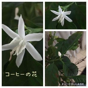 おはようございます😊 昨日の夜、開きかけだったコーヒーの花 起きたら2輪咲いていました(*´꒳`*) 真っ白でジャスミンみたいないい香り💕 残念ながら去年のようにはいかず、数が少ないですね😔咲いてくれるだけまだいいのかなぁ(*´ω`*)