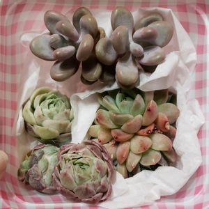 連投ごめんなさい🙏💧 本日届いた別の子達🌱 「ホワイトフェニックス」という中二心くすぐる名前に惹かれ…w✨(*´꒳`*) 今は芽キャベツみたいでコロっと可愛いですが、成長したらどんな姿になるのか楽しみです♪(他の子達も) 本日は他にも届いた子達が居るんですが、鬼の連投回避で後日に投稿したいと思います🙇♀️