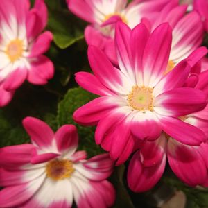 🍀🌻🌷💐🌺🌻🍀 🍀🩷サイネリア(シネラリア)🩷🍀 💐サイネリアの花言葉は(快活)、(愉快)、 (喜び)です 💐サイネリアはキク科のペリカルリス属の 植物で、本来は多年草の植物ですが、暑 さに弱いため1年草として扱われます 💐花色は青や紫、白やピンク、複数の色が 混ざったものなど様々な品種があります 💐花の大きさも花径3cmほどの小さなもの から、花径8cmを超える大輪のものでま であり、放射状の花をこんもりと集める ようにして咲くのが特徴です 🍀🌻🌹💐🌺🌻🍀