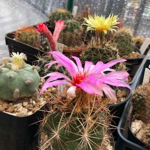 悪天候の中咲いています。 ロフォフォラデフューサ、マツカナパウキコスタータ、ハマトカクタス竜王丸、テロカクタス大統領です。 1番奥で蕾を上げているのはマツカナ妖仙玉ですね。