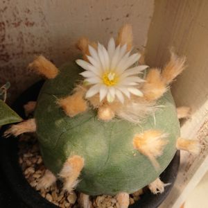 おはようございます! 蒸し暑くなりそうな朝です! ロフォフォラ属:翠冠玉 クーさんからのアドバイスで、育て方を少し変更したら見事に開花しました! クーさんありがとう!