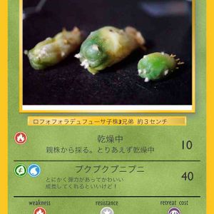 ポケモンカード風に編集できるアプリがあったので使ってみました。対戦に使うにはまだまだ弱そうです👶 ロフォフォラデュフューサの子株を採ったので、数日乾燥させて植えてみようと思います!!初めてなのでどうなるやらです…💦 印刷してカード風に記録日誌つけたら面白いかなと思ったんですが、難しいかな。 闘えるように強く進化しろよー!😁