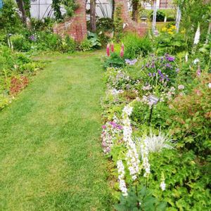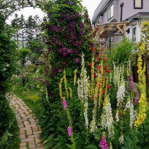 風花 クレマチスやジギタリス、 カンパニュラが満開に なっていてバラと抜群な 組み合わせになっています