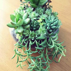 昨日買ったのとりあえずみんな寄せ植えした!寄せ植えは初です。 行き当たりばったりでスペースあまり過ぎたのでジュセッピーの小苗でスペース埋めました😅 水やりの必要な頻度ばらばらだからこのまま維持するのは難しいかも💧 とりあえずこのままチャレンジしてみます─=≡Σ((( っ゜∀゜)っ