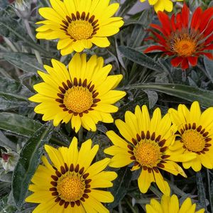 久しぶりの投稿です😊 ❇ガザニア 7月の中頃お迎えの救済苗2株、黄色と赤、鉢が見えないくらい元気になって咲いてる❗ 嬉しいです🤗