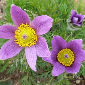 💜西洋オキナグサ 今年も咲きました😊💕 綺麗な紫色❗ 今日は19°/8°と暖かく薄日が射して穏やかな日です🥰 桜🌸も開くのでは⁉️ 待ち遠しいです。🥰