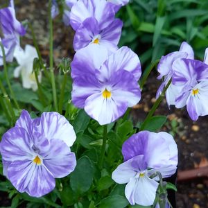 💜宿根ビオラ お店で、うん!宿根?初めてお目にかかり、即決で連れて帰りました😊 来年も咲いてくれるのかしら?楽しめますね😉🎶 今日は弱い☔もう少し降ってくれてもいいかな😅