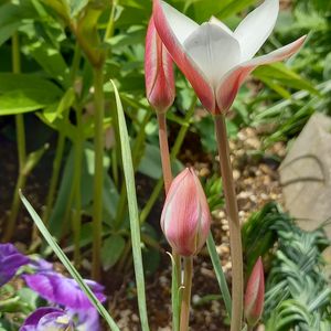 🌷原種チューリップ ペパーミントスティック もう10年位になるかも?スマートに咲く姿、大好き😆💕