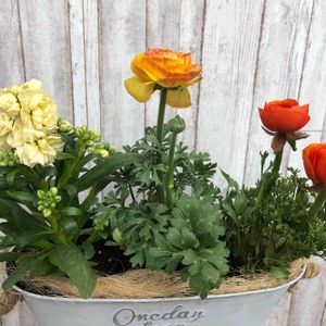 🧡ラナンキュラスとストック💛 最近娘に買い物頼まれてスーパーによく行きます。 そうすると園芸コーナーに目が止まり、ついつい手に取ってしまいます😅 また買ってしまった💦 HCで買うより安かった😊 ストックはクリーム色、優しい感じが気に入りました❣️