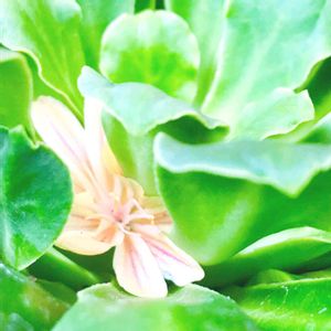 このお花 なんだと思いますか…(*´罒`*)♥ニヒヒ 葉っぱの中に埋もれながらも 頑張って咲いてる…… レウイシアさんです(๑´ლ`๑)フ°フ°♡ 窮屈そうだけど 健気でかわいい๓´˘`๓♡