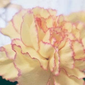 クリーム色とピンクフリルが可愛い切り花カーネーション🌹 年末にtoilet用に。10輪。ガラスの花びんに差してます。蕾の状態で花びんにおさまって欲しかったけど、すでに全輪開花してました。でも!あの日のまま!スバラシイ!!まだまだ、このまま行きそうです😊