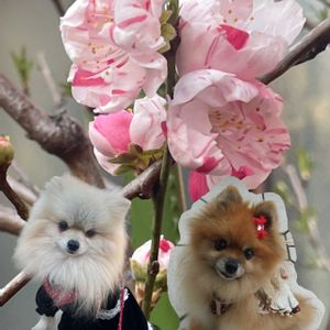 こんばんは🌇 今日は虹🌈の日にまりんとマリンで 参加させてくださいね。 ① 花桃とまりんとマリン ②桃の花🩷蕾です。 ③④⑤花桃です。 いつまでも忘れないよ♡
