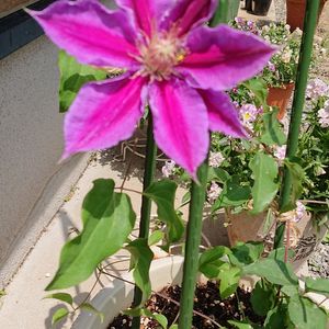 🌺クレマチス、ドクターラッペル 40㎝位の高さで咲きました。少し低すぎじゃね🤔この後どうなる?其れにしてもクレマチスの開花速度速すぎる気がするわ。2時間位前は未だ蕾だった様な・・・。