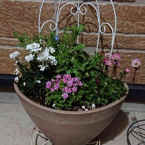 🌺この前植え付けた寄せ植えにミニトレリスを付けて見ました、雰囲気でてるかな?