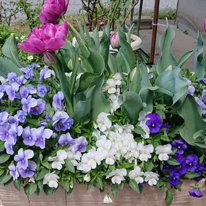 🌺プランター植えのビオラとチューリップ、ビオラがとっても元気です。