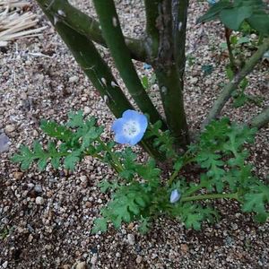 🌺バラの株本で零れ種のネモヒラの花が咲き始めました。