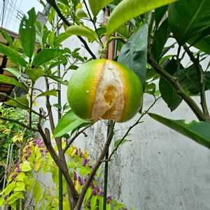 おはようございます(^-^)/ 今日は曇り☁️。 1️⃣鉢植えの八朔(ハッサク)実が割れてしまって😱 天候のせいでしょうか?ショック↷ 2️⃣鉢植えレモン🍋3個は大きく成長👍 3️⃣割れない内に🍋収穫✂️ 4️⃣またハマチを貰ったので刺身と塩焼きに🍋を絞って🥢🙏 ☆穏やかな1日であります様に🙏💚🤍💜❤️💛🧡🩵🩷