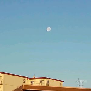 こんにちは(*^^*)🍀 朝六時半のお月様が西の空に東から明るんで来ました☺️ 少し欠けたお月様綺麗でした🎶