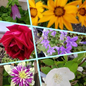 昨日散歩で出会ったお花達です😌💓 ホタルブクロ、深紅の薔薇、クレマチス、ガザニア、ベルフラワー、バイカウツギ