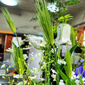 こんにちは(^-^)/ お天気のせいか…身体もシャキッとしません(-.-) …が…これからTV相撲観戦👏(^o^)/ガンバロー♪ 1️⃣麦の穂♡イイネ~💕 2️⃣カスミソウと班入りカラーも一緒に…👍 3️⃣4️⃣バラ(ピンクサクリーナ) *.゚+ヽ☆*∴°※∵♪ +.゚*
