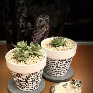 ③最近 DAISOの植物って あんまり入荷してないし、 売れないから 萎んだの多いし、 ラインナップが乏しいし、 イマイチで見てなかったんだけど この前 チラ見してたら ちょっとかわい子ちゃん見つけた。 ①センペルビウムの何か。 名札にはセンペルビュームだけ。 DAISOの素焼き鉢を一緒に買って、 なんかチラッと落書きしようと 思ってたら そん時聴いていた好きな曲の歌詞をつらつらと書き連ねていた。 まぁ、いいか…。 ②フィカス ベンガレンシス。 110円のカワイイ苗を 育てる醍醐味✨️