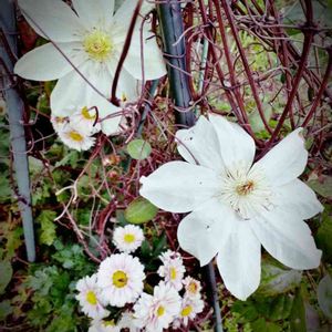 こんばんは。 クレマチスの下に小菊が。 最近、こんな感じの枯れて行く様も嫌いじゃないんです。