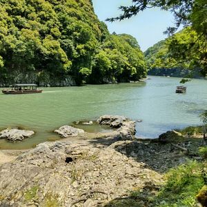 今日は暑かったですね☀ 嵐山のちょっと穴場の遊歩道を歩きました🚶 もみじの緑が目に優しく、木々の木陰で涼しくて快適でした✨ 保津川下りの舟がゆったりと前を通ります。 修学旅行の学生さんもたくさん見ました。