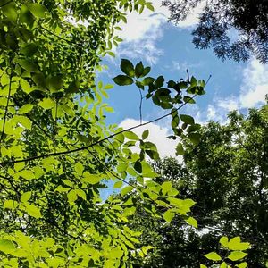 里山散歩で下ばかり見てないですよ~ 「樹木見上げ隊」 大きな木々の美しさ✨、青空も美しい✨ 樹木の中を歩くと涼しくて、気持ち良い(^ー^* )