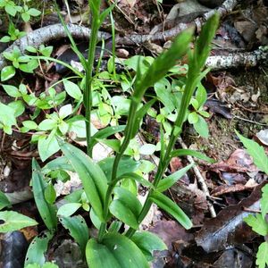 これも、わからない植物です💦 6月7日に見て、「もう少しで花が咲きそう」と一週間後に見に行ったら、、、 葉っぱは虫に食べられて、花の部分は萎れてました💦 オオバノトンボソウが近いように思いましたが、、、
