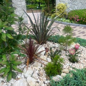 キングプロテア 先日のポストで名前を教えて頂きました。 そのキングプロテアの植えてあるマンションの植栽 オージープランツのガーデンでオシャレです。通勤の時に目にしてます。