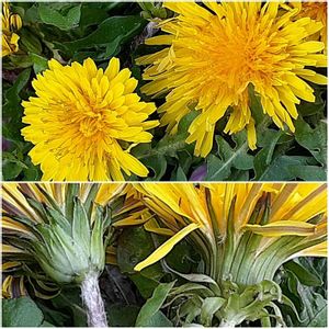 実家の庭に並んで咲いていた 2種のタンポポ🌼*・ セイヨウタンポポと... ニホンタンポポでいいのかな?🤔