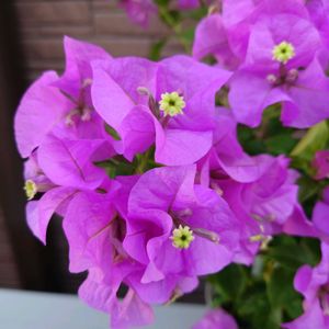 おはようございます ブーゲンビレア八重咲きです 育て始めて2年経ちます 八重咲きは花も違い、小さな花で可愛いです。