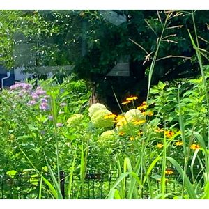 散歩🐾ᵕ̈に行く途中の車窓から🚙💨… 🤍アナベルと色とりどりの花がナチュラルな 景色ですꕤ*ੈ𑁍༘⋆⟡