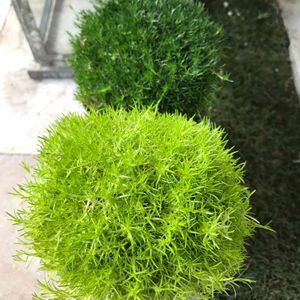 サギナ(もふリッチ)をお迎えしました✨ (╹◡╹)♡ 画面中央の黄緑色の丸いのと、 明るい緑色の丸いのがサギナ。 画面右側の深緑色は100均の人工芝です。 ・・・並べると結構似てる〜∑(゚Д゚)