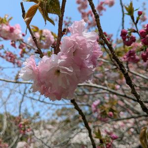 おはようございます☀️ 八重桜🌸 ①江戸🩷 ②市原虎の尾🤍 メインの太い茎からゴツゴツした細い茎が上を向いて花が咲いているような特徴がある感じ?😳😁