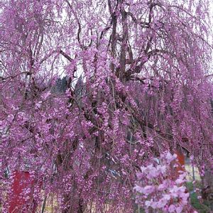八重のしだれ桜🌸 たくさんの花びらが散っています😂 淡い色合いの新芽が出てきていい感じ🤗