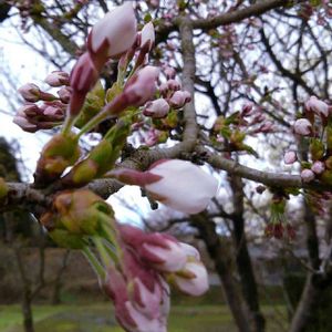 うちのお庭の桜もちょっと開いてきました
