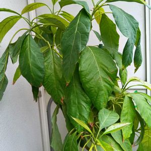 ベランダで鉢植えアボカド🥑 5年目です 大きくならぬように先端止めたら 脇から枝が何本もニョキニョキ 葉っぱも大きくなってびっくり🥑🥑🥑 冬越しもベランダで頑張ってる〜