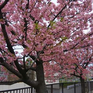 雪予報で蟄居してたので 友に誘われて 河津桜を見に来ました 大横川河岸に桜並木が満開でした