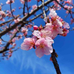 〝河津桜〟 青空の下 公園の桜が 咲き始めました🌸