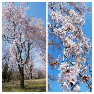 近くのスポーツ公園の垂れ桜。今日は風もなく、絶好の花見日和です。🌸😍💗