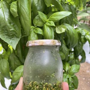 やや曇り🌤️気温26℃、湿度81% 繁殖力旺盛なバジル🌿とオリーブオイルとニンニクをミキサーにかけてバジルソースを作りました♪ まいにち暑い日が続きますが、ご自愛ください💕