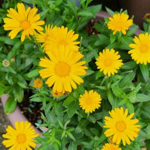 こんにちは👋😃 種蒔きのキンセンカ 一度切り戻しています。草丈は、低いけど、花が咲いてきました。 花は小さくなりました。 今朝、花がら摘みました。 液肥入り水やりしました。 今が梅雨みたいなお天気です。 今日も蒸し暑い日です。